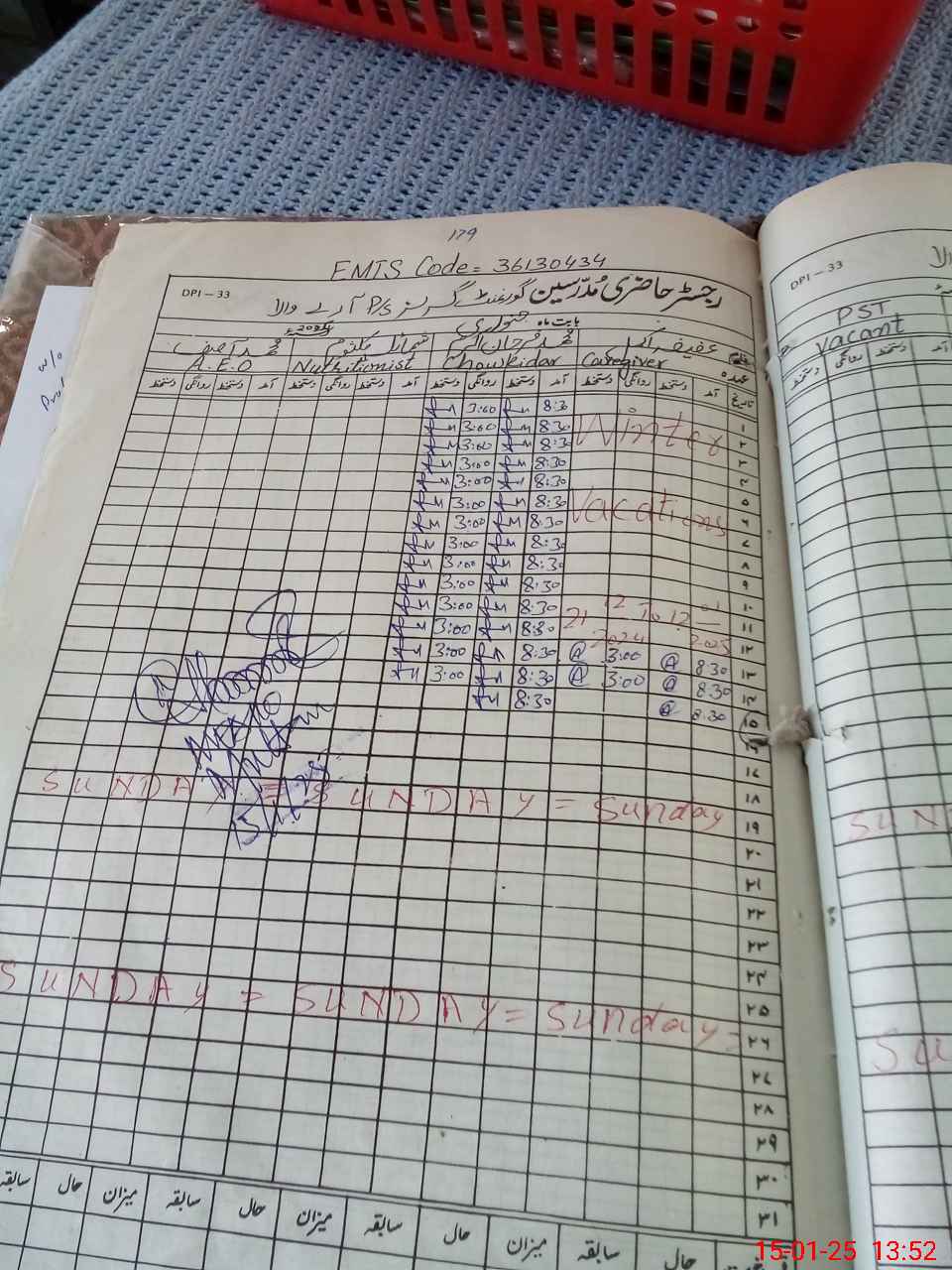 | CNIC | Full Name | Designation | R/C | Absence During Last Calender Month |
