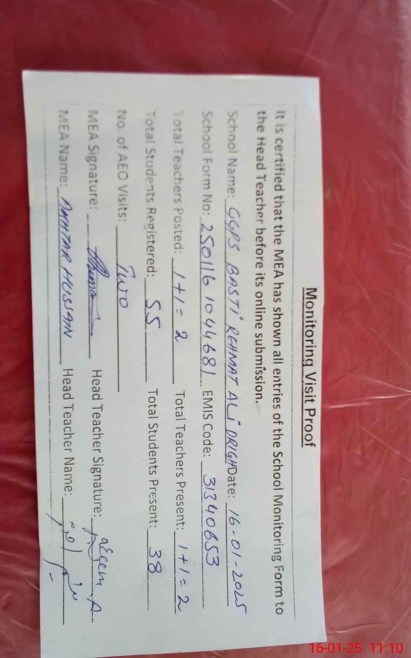 | EMIS Code: 31340653 | Name of School: GGPS REHMAT ALI DRIGRAH | |||