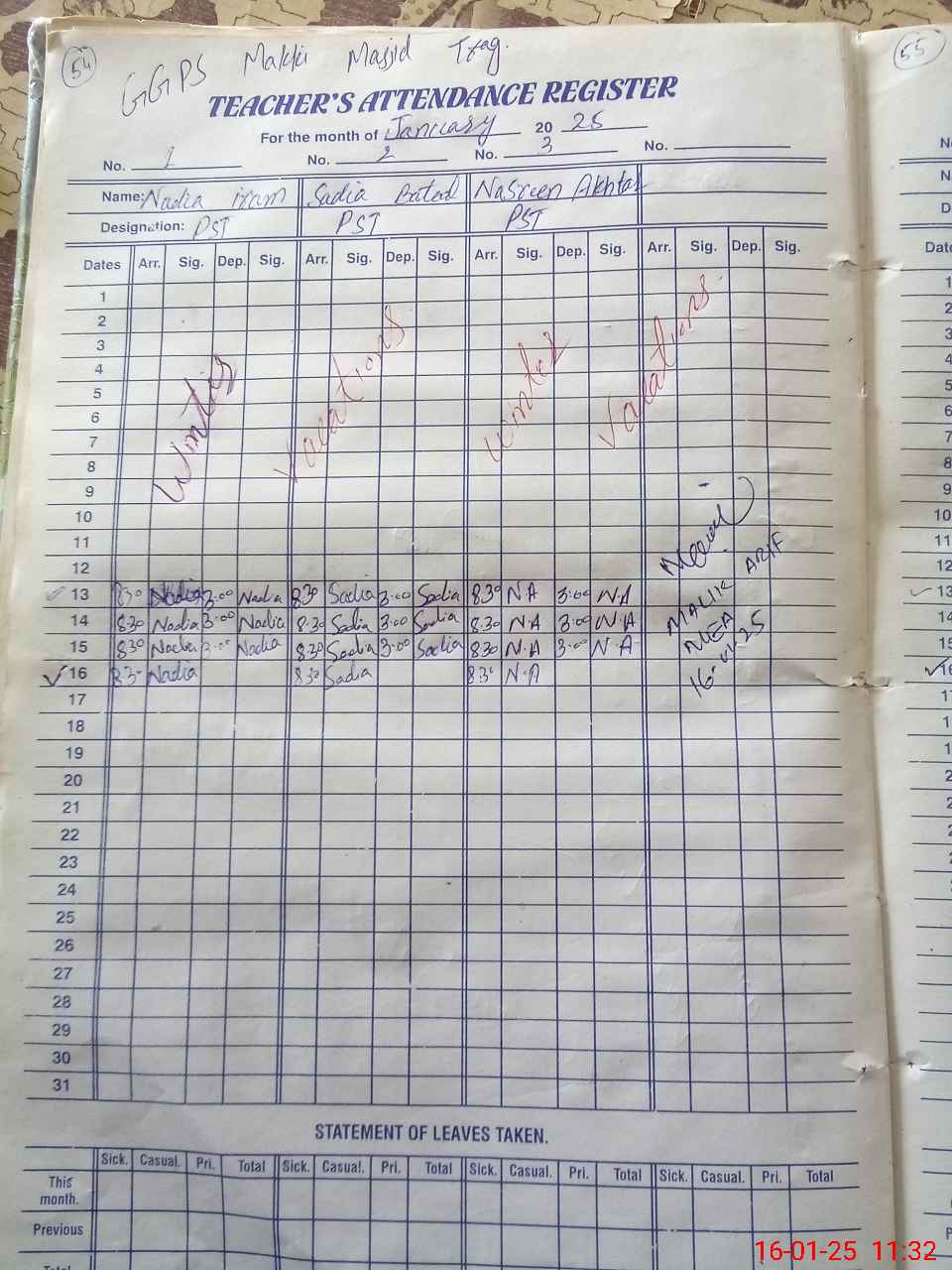 | Monitoring Date: 16-01-2025 | Start Time: 16-01-2025 11:18 AM | End Time: 16-01-2025 11:45 AM | Name of MEA: MU**** AR**** | |