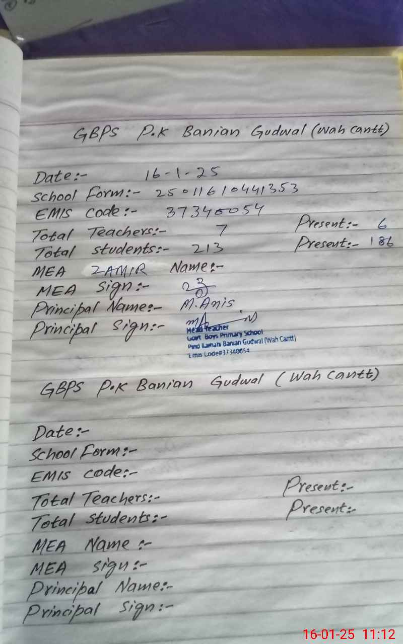 | EMIS Code: 37340054 | Name of School: GPS PIND KAMALA BANIAN | |||