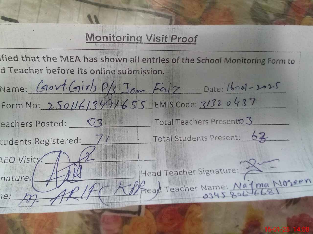 | EMIS Code: 31320437 | Name of School: GGPS JAM FAIZ | |||