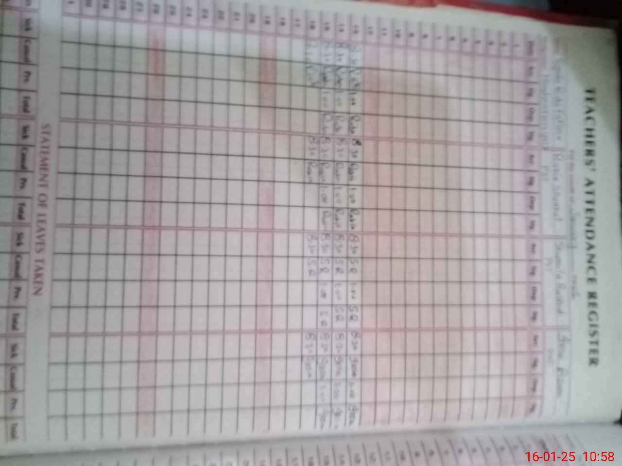 | CNIC | Full Name | Designation | R/C | Absence During Last Calender Month |