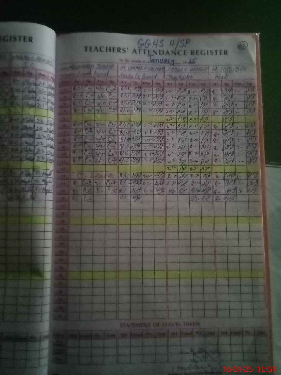 | CNIC | Full Name | Designation | R/C | Absence during last cal. month |