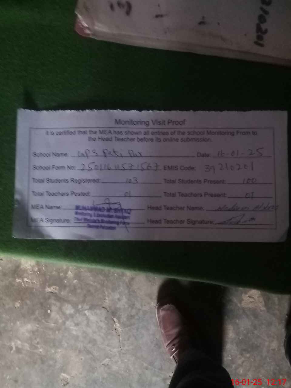 | EMIS Code: 39210201 | Name of School: GPS PATI PUR PO KUMHARI WALA PAKPATTAN | |||