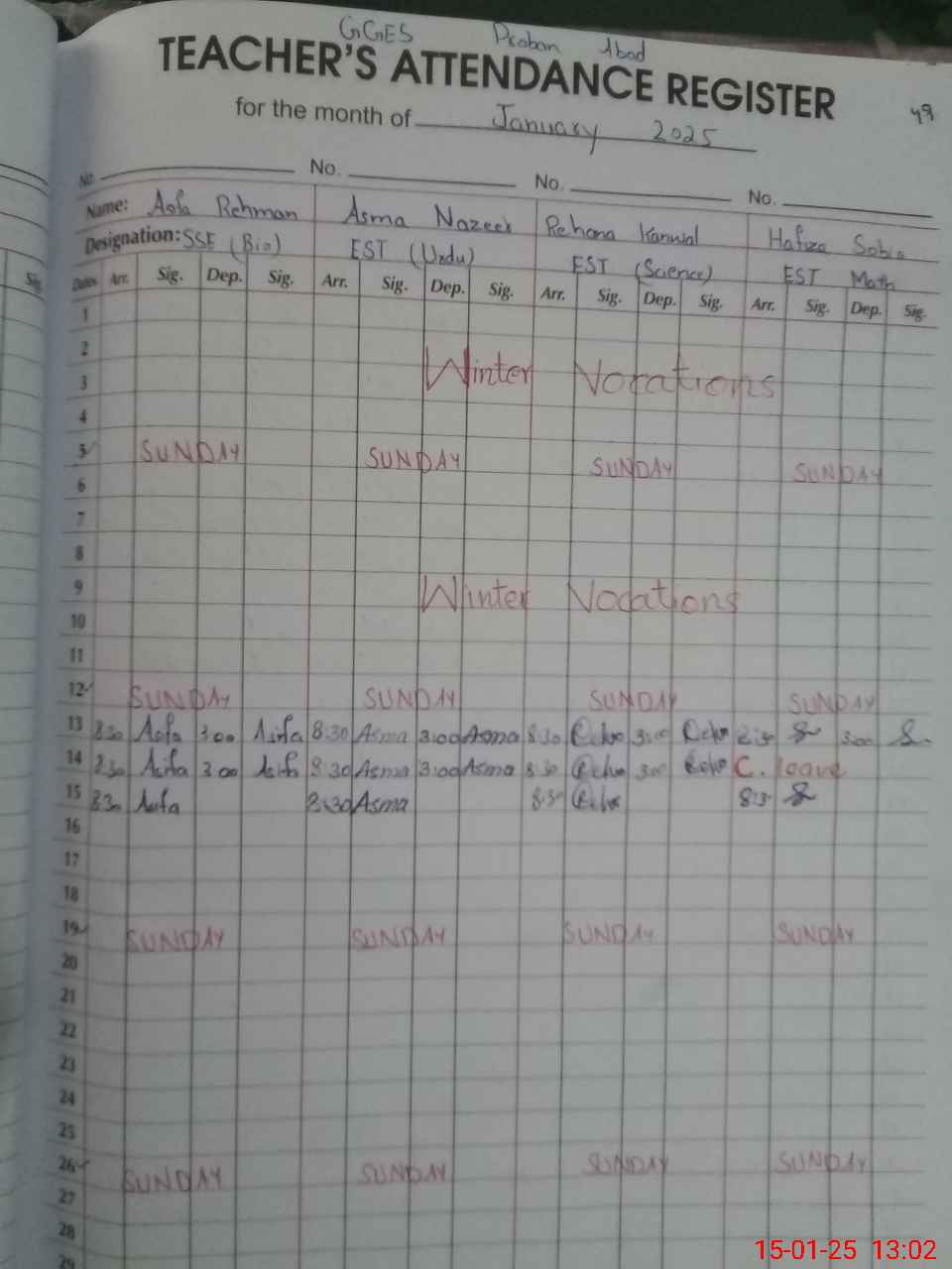 | Name: As**** Re**** Designation: (School Headmaster's/Headmistress's) SSE(E) Phone/Cell Number: 03**** |