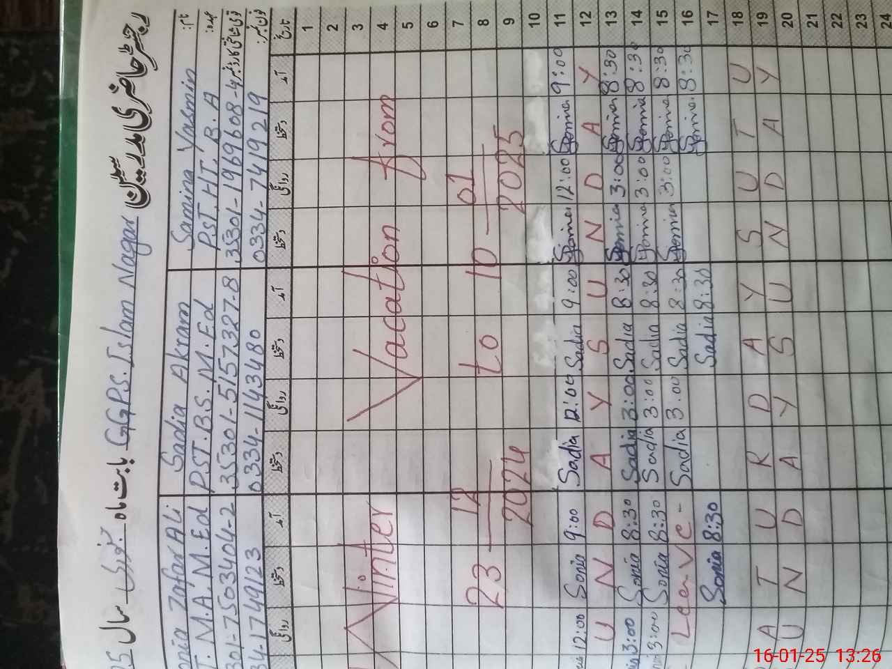 | Name: Sa**** Ya**** Designation: (School Headmaster's/Headmistress's) PST Phone/Cell Number: 03**** |