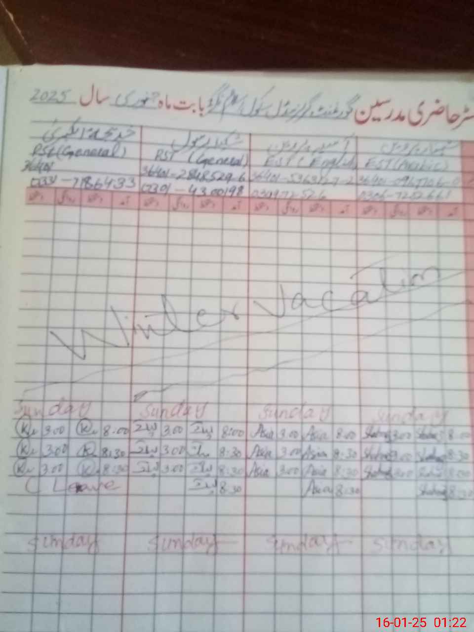 | Name: AS**** PE**** Designation: (School Headmaster's/Headmistress's) Est (ENG) Phone/Cell Number: 03**** |