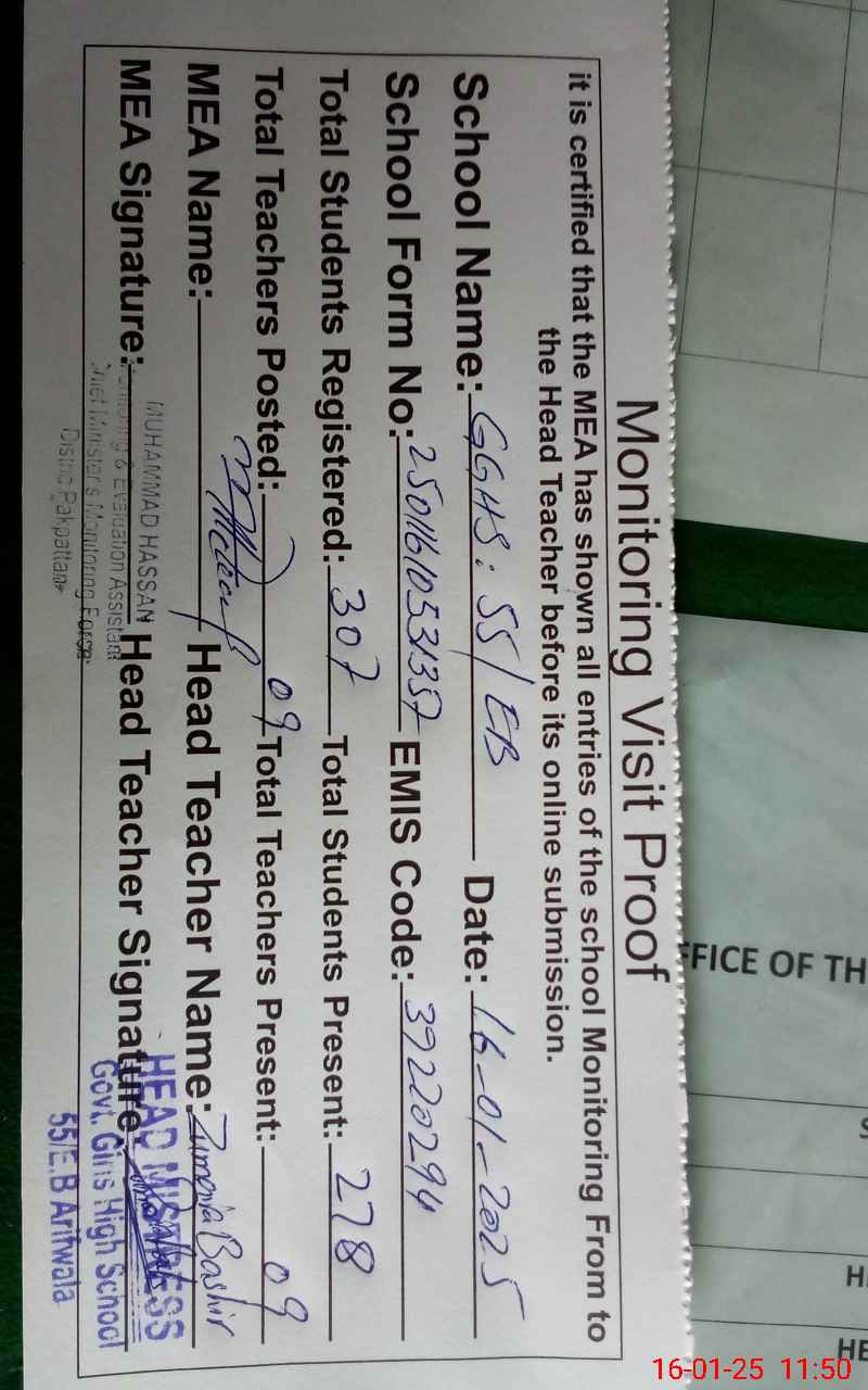 | EMIS Code: 39220294 | Name of School: GGHS 55 EB | |||