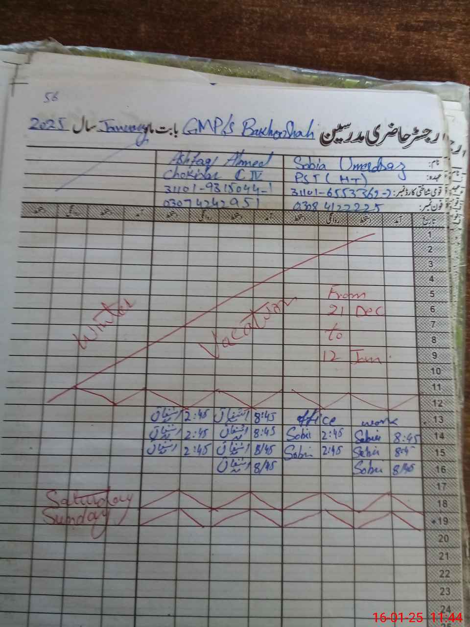| CNIC | Full Name | Designation | R/C | Absence During Last Calender Month |