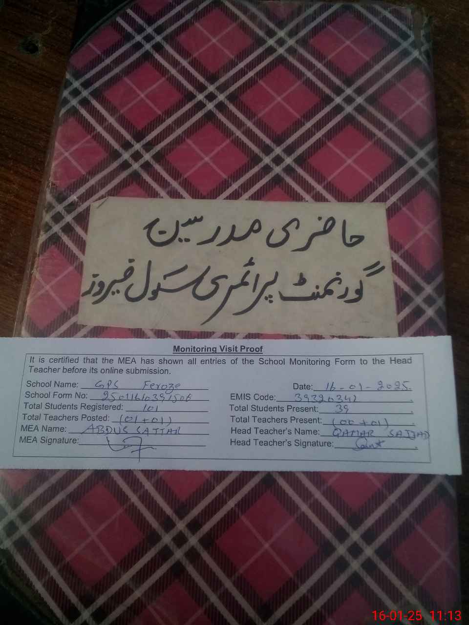 | EMIS Code: 39320342 | Name of School: GPS FEROZE | |||