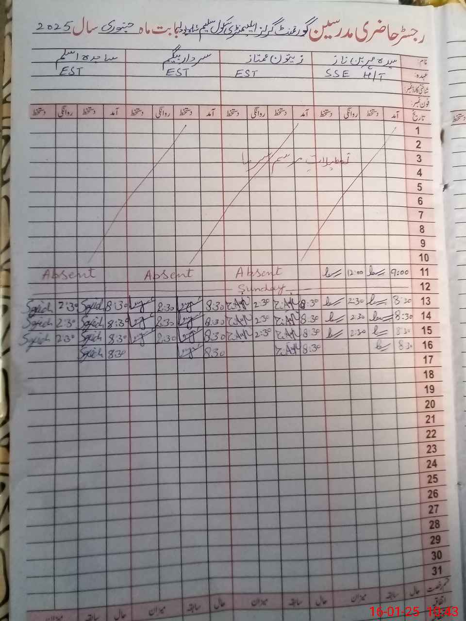| CNIC | Full Name | Designation | R/C | Absence During Last Calender Month |