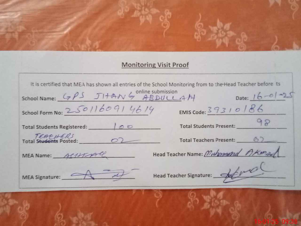 | EMIS Code: 39310186 | Name of School: GPS JHANG ABDULLAH SHAH | |||