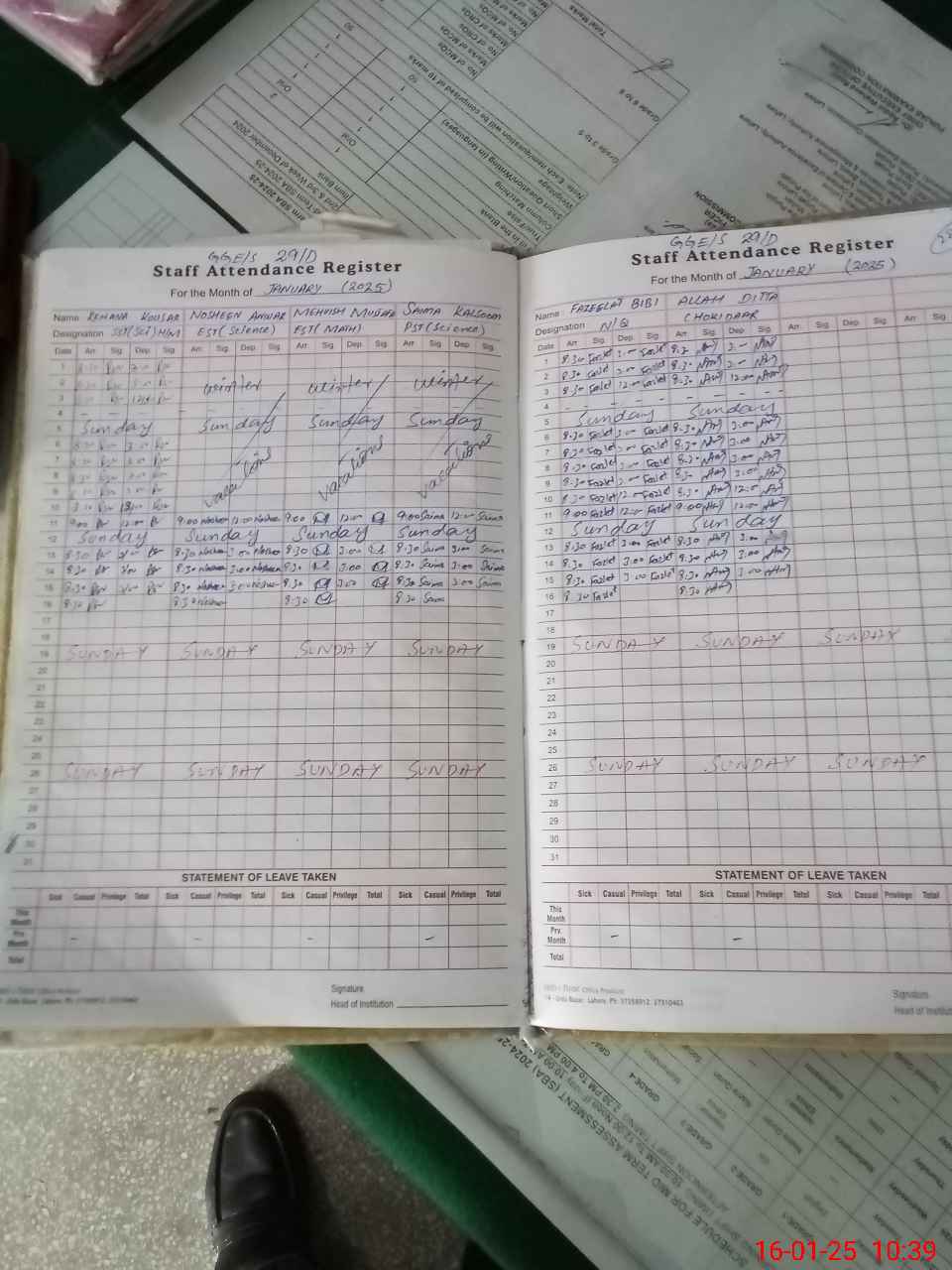 | Leave | Duty | Absent | Maternity | Medical | Ex- Pak |