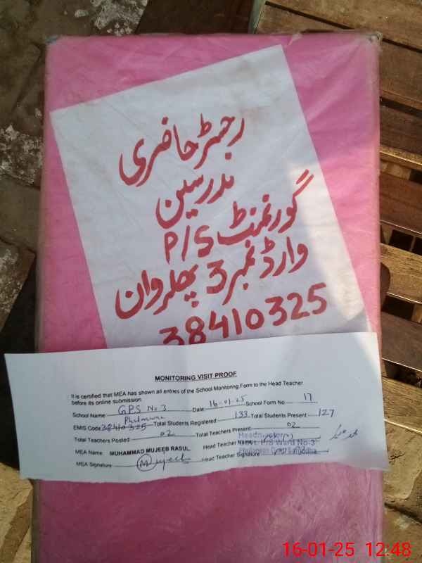| EMIS Code: 38410325 | Name of School: GPS NO. 3 PHULARWAN | |||