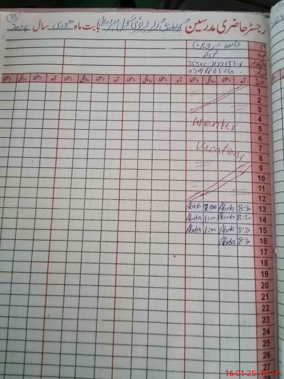 | CNIC | Full Name | Designation | R/C | Absence During Last Calender Month |