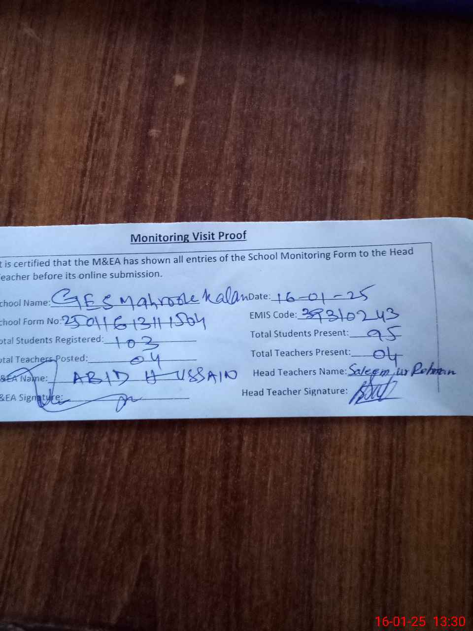 | EMIS Code: 39310243 | Name of School: GES MAHROOK KALAN | |||