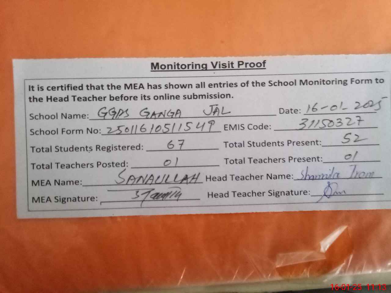 | EMIS Code: 31150327 | Name of School: GGPS GUNGA JAL | |||