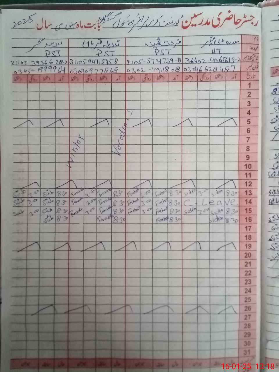 | CNIC | Full Name | Designation | R/C | Absence During Last Calender Month |