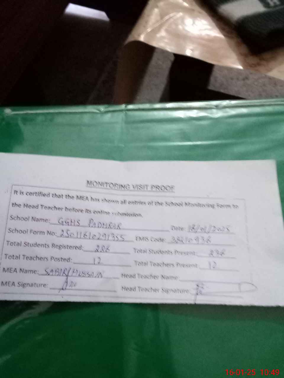 | EMIS Code: 38210936 | Name of School: GGHS PADHRAR | |||