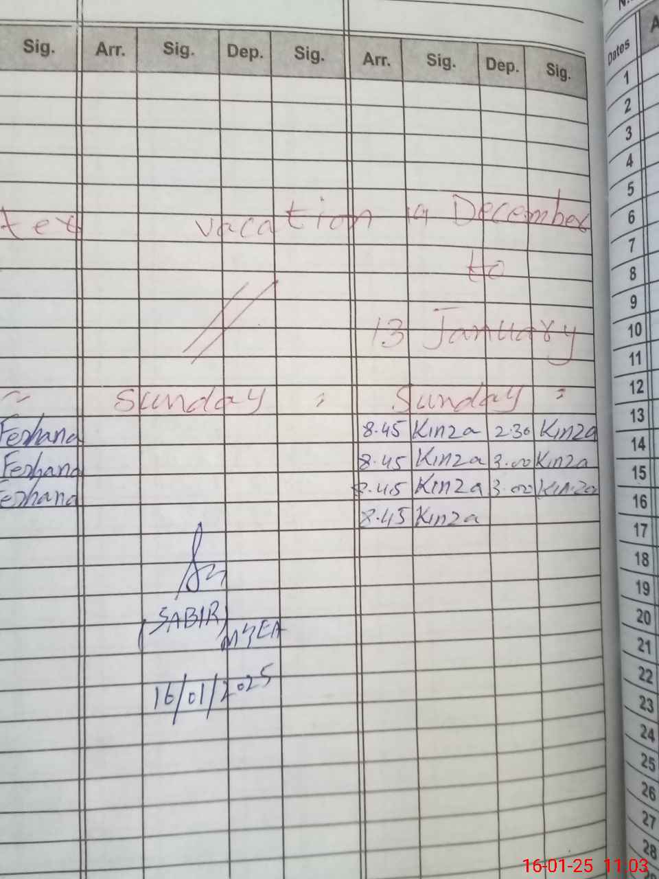 | Monitoring Date: 16-01-2025 | Start Time: 16-01-2025 10:53 AM | End Time: 16-01-2025 11:11 AM | Name of MEA: SA**** HU**** | |