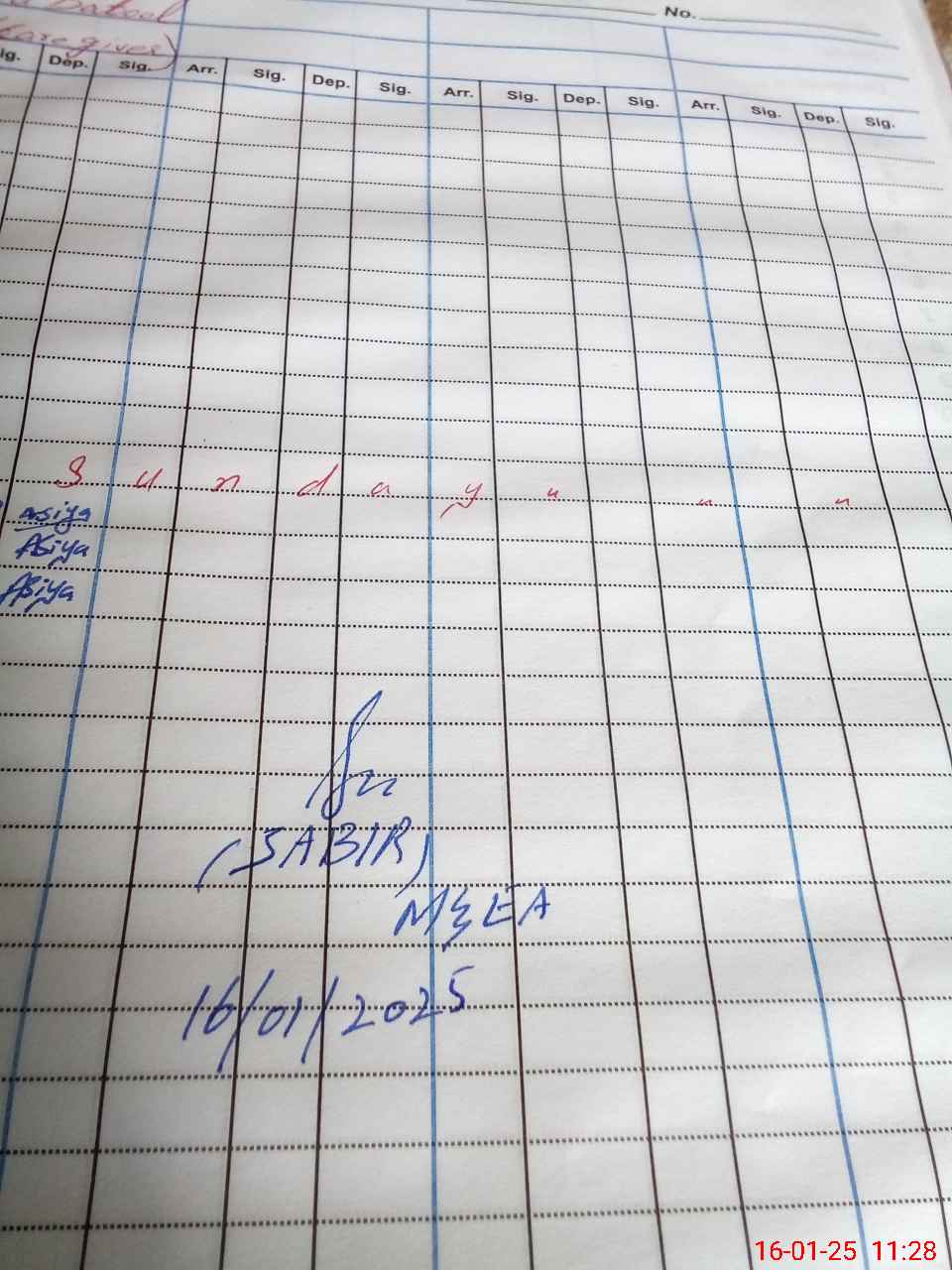 | CNIC | Full Name | Designation | R/C | Absence during last cal. month |