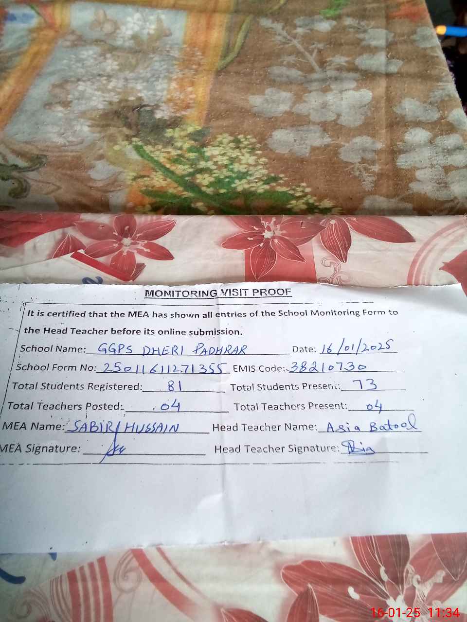 | EMIS Code: 38210730 | Name of School: GGPS DHERI PADHRAR | |||