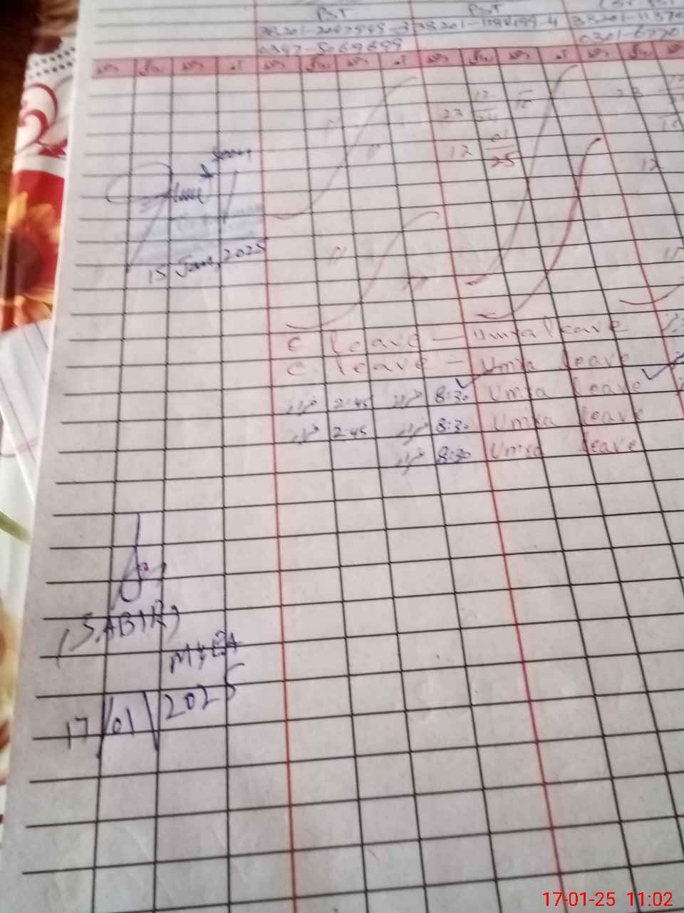 | CNIC | Full Name | Designation | R/C | Absence during last cal. month |