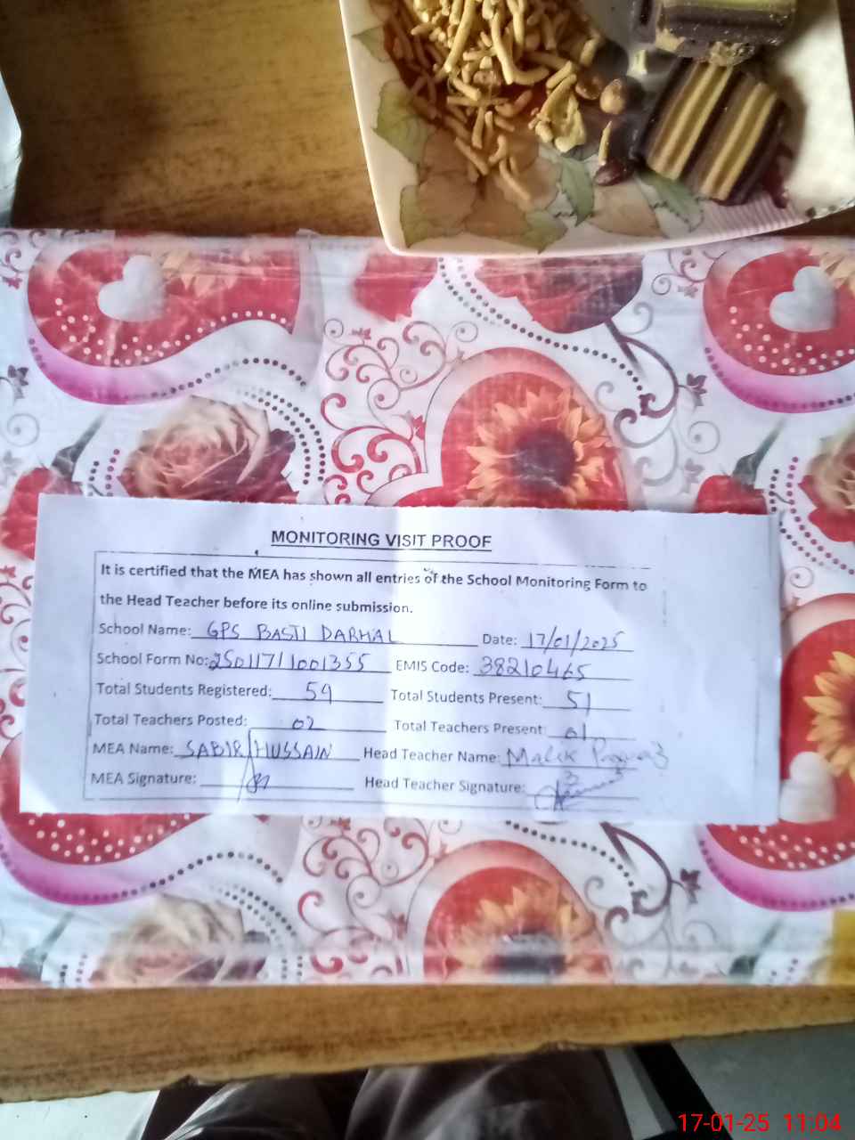 | Attendance Register | Head Teacher | MEA with School | Visit Proof |