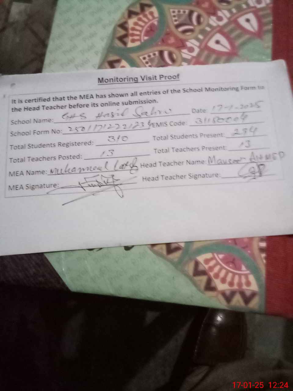 | EMIS Code: 31150004 | Name of School: GHS HASIL SARU | |||