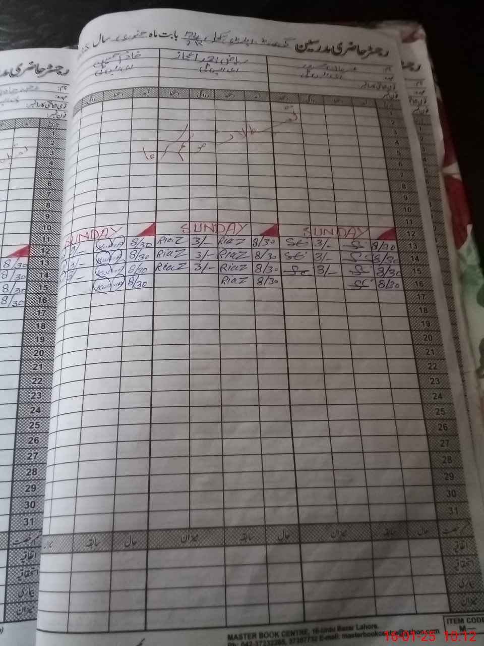 | CNIC | Full Name | Designation | R/C | Absence During Last Calender Month |