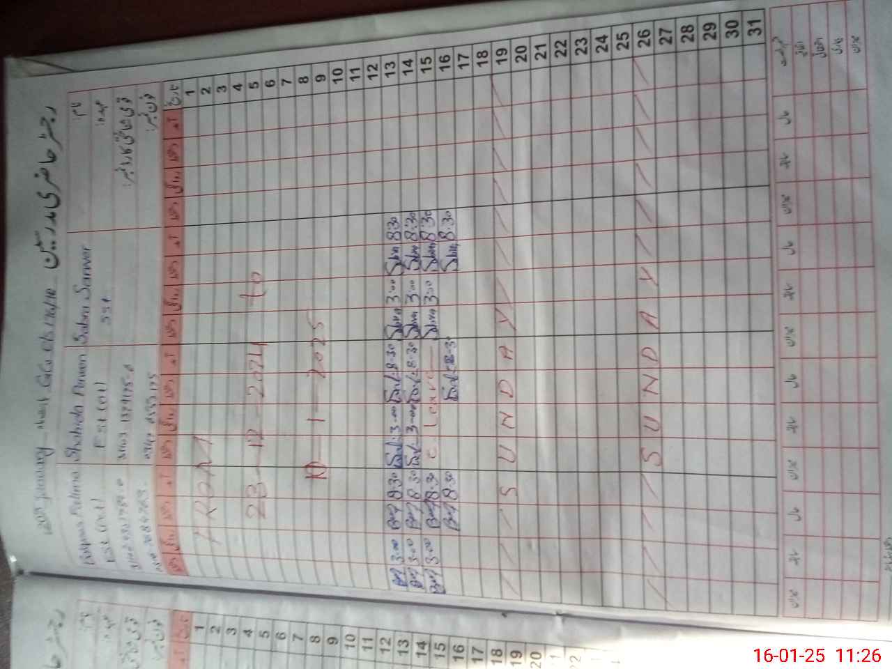 | CNIC | Full Name | Designation | R/C | Absence During Last Calender Month |