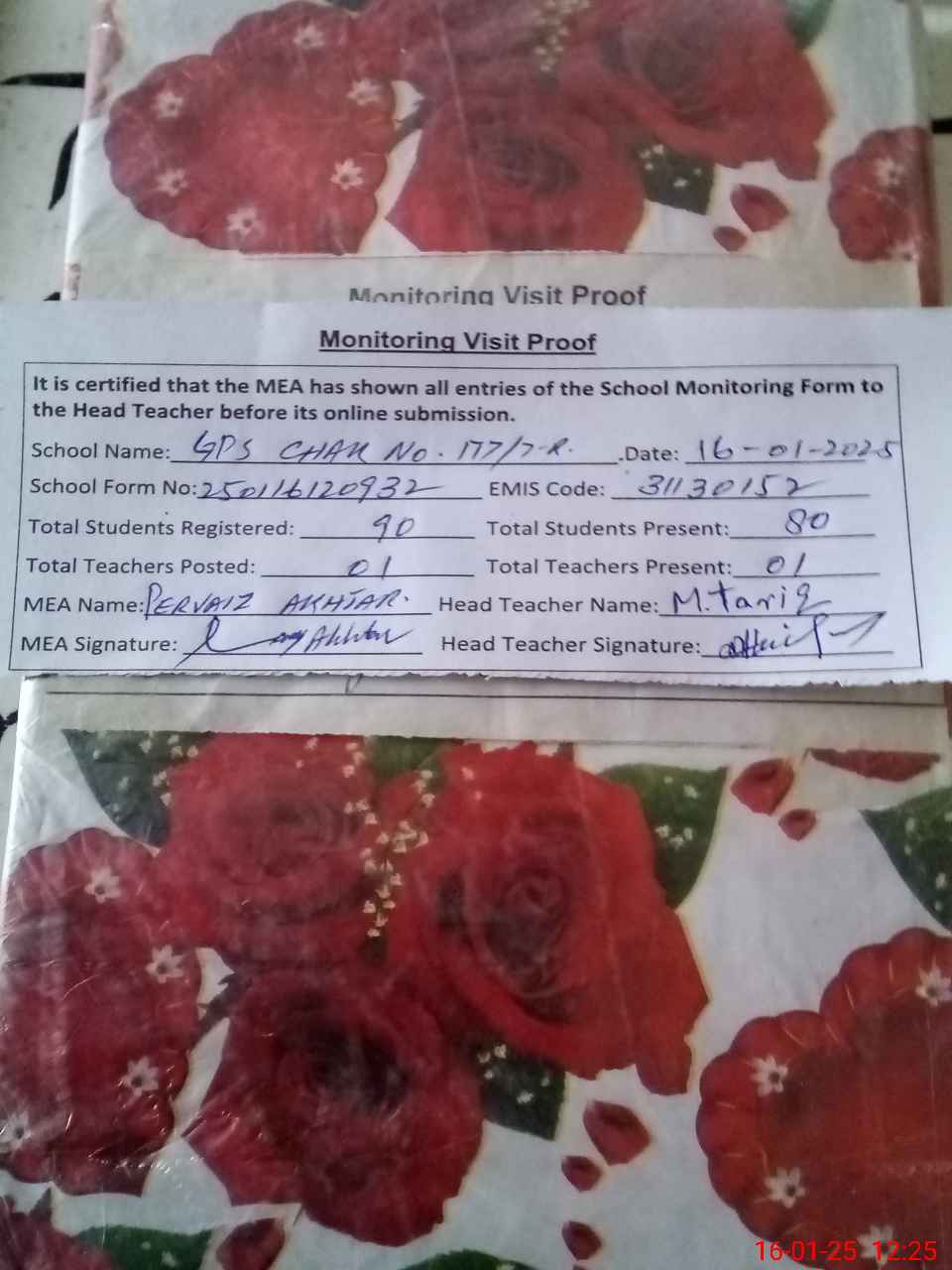 | EMIS Code: 31130152 | Name of School: GPS CHAK NO 177/7-R | |||