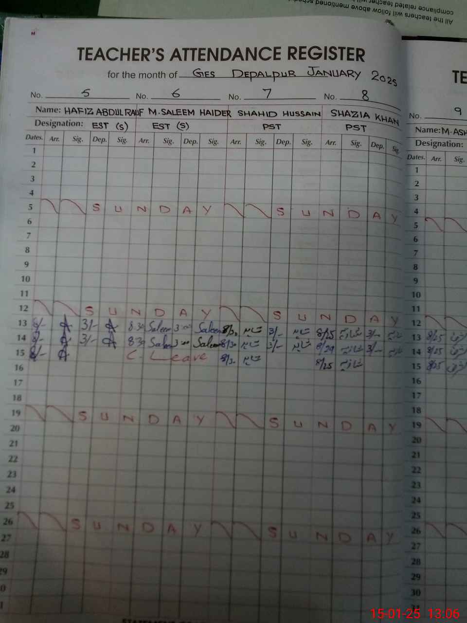 | CNIC | Full Name | Designation | R/C | Absence During Last Calender Month |