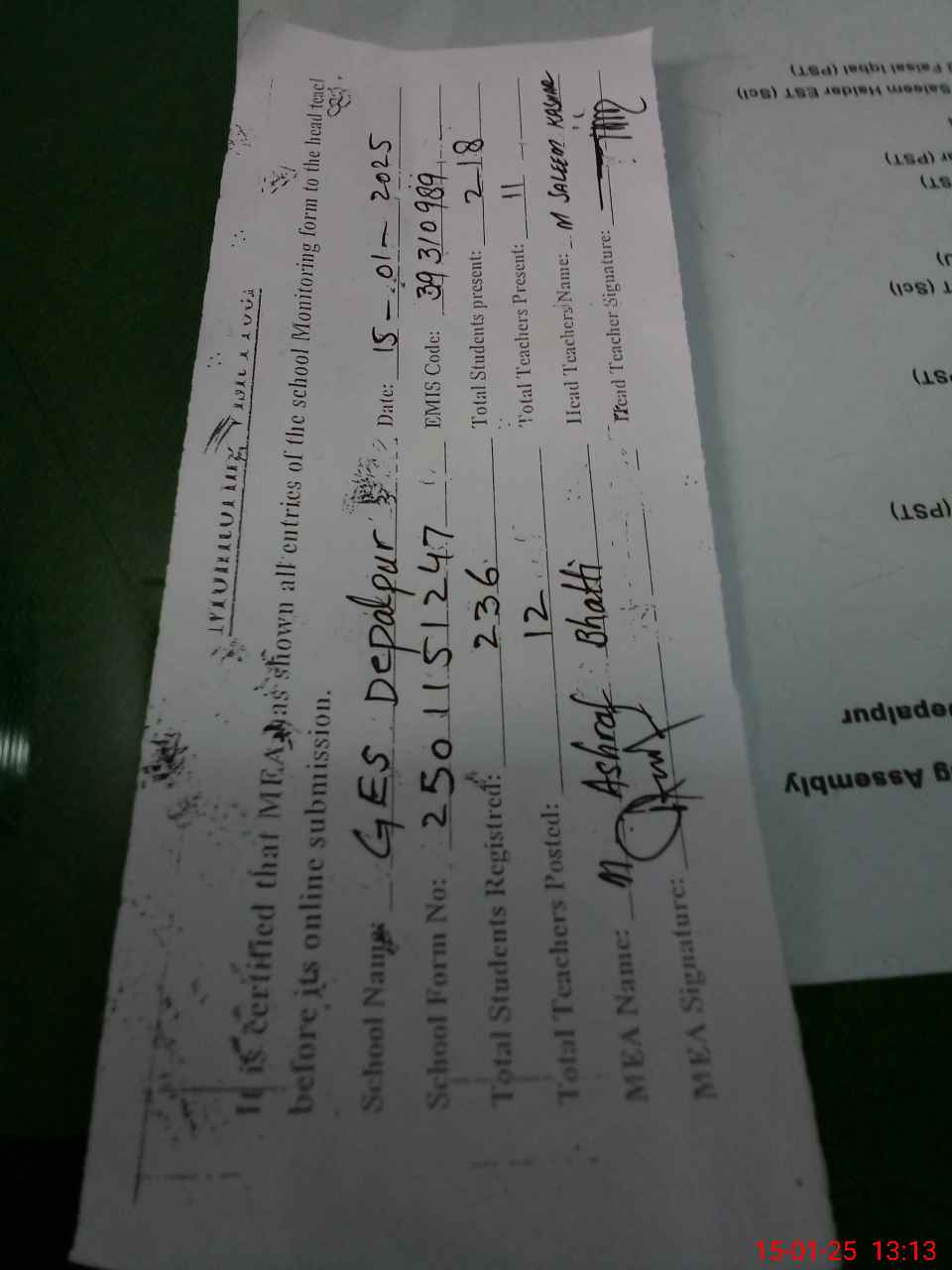 | Name: Ra**** Sa**** Ka**** Designation: (School Headmaster's/Headmistress's) HM Phone/Cell Number: 03**** |