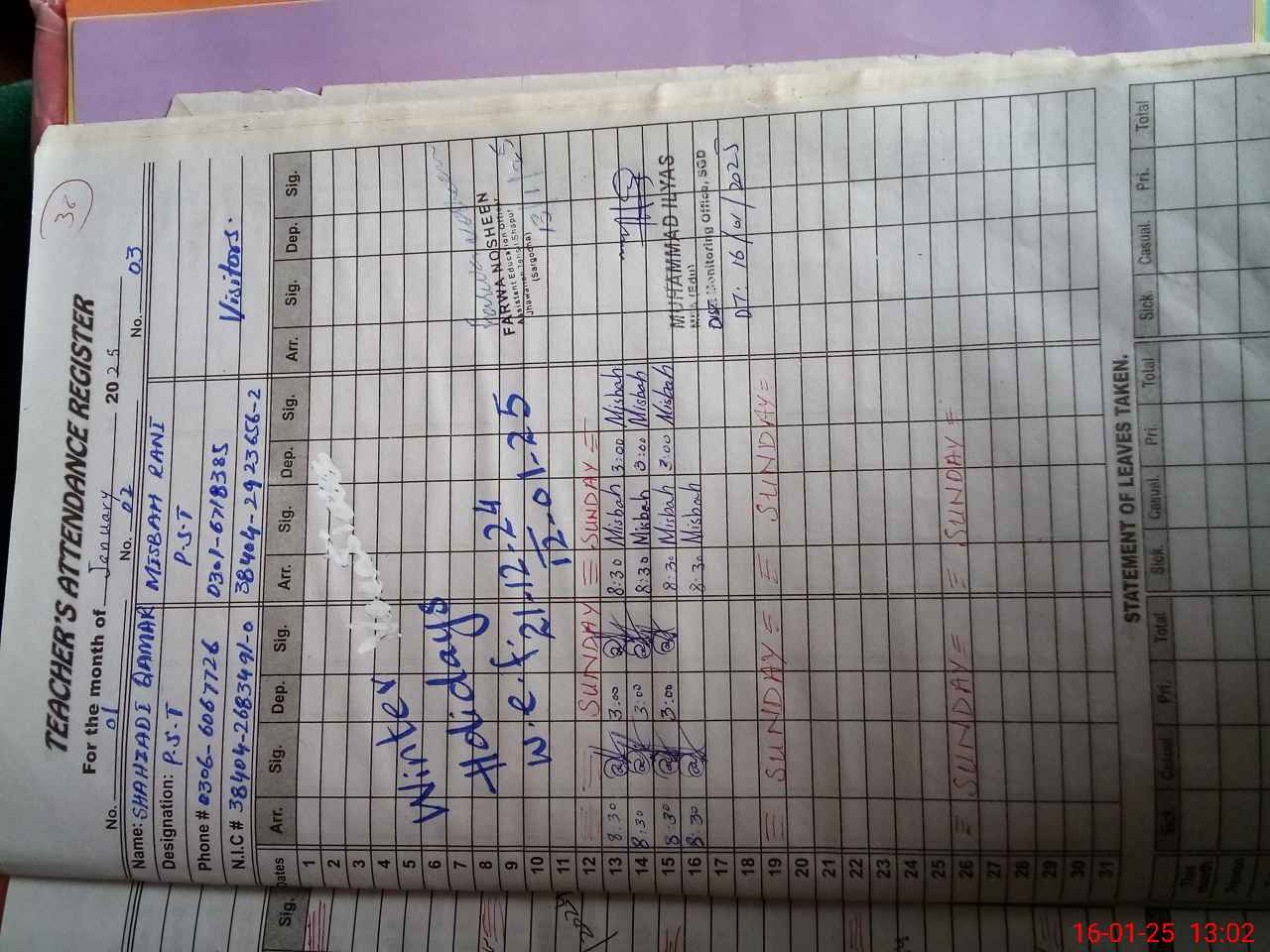| Name: SH**** QA**** Designation: (School Headmaster's/Headmistress's) PST Phone/Cell Number: 03**** |