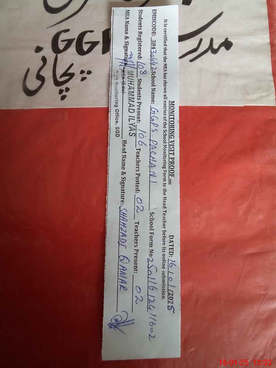 | EMIS Code: 38430442 | Name of School: GGPS PACHANI | |||