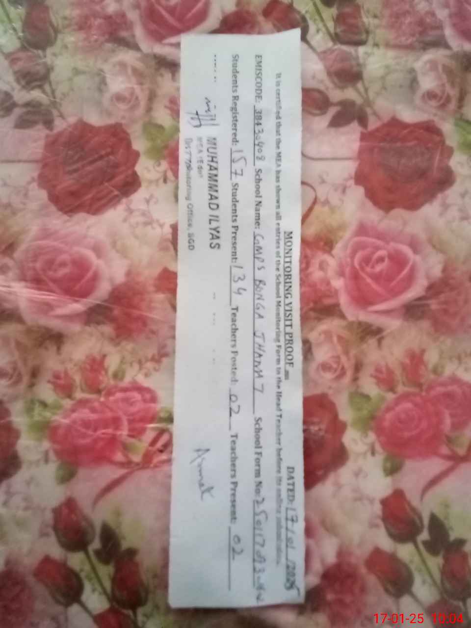 | Name: AS**** BA**** Designation: (School Headmaster's/Headmistress's) PST Phone/Cell Number: 03**** |
