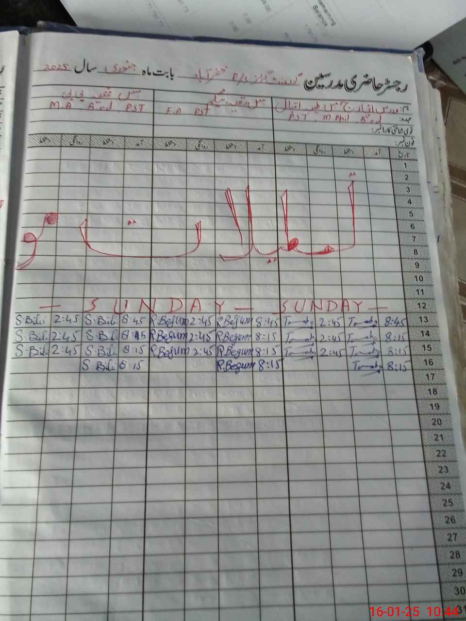 | CNIC | Full Name | Designation | R/C | Absence During Last Calender Month |