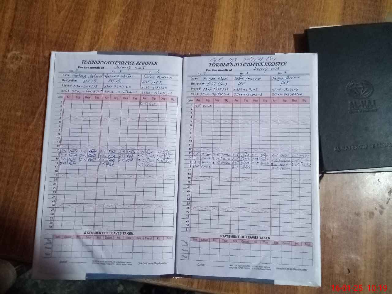 | CNIC | Full Name | Designation | R/C | Absence During Last Calender Month |