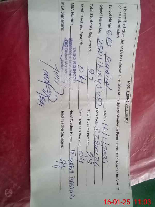 | EMIS Code: 37210176 | Name of School: GPS BHATIAL | |||