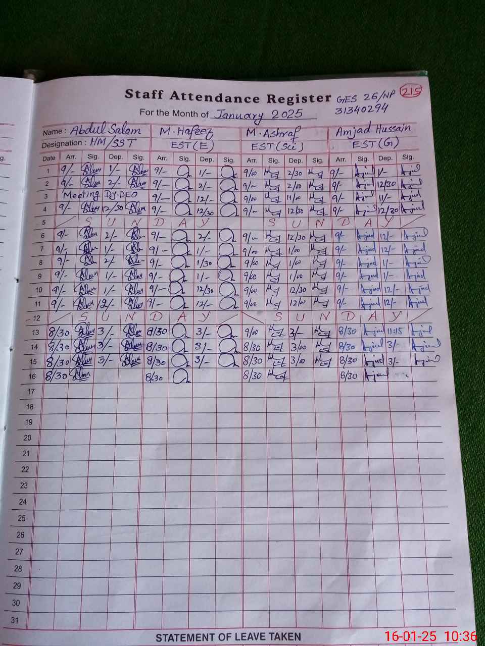 | Name: AB**** SA**** Designation: (School Headmaster's/Headmistress's) S.S.T.(SC) Phone/Cell Number: 03**** |