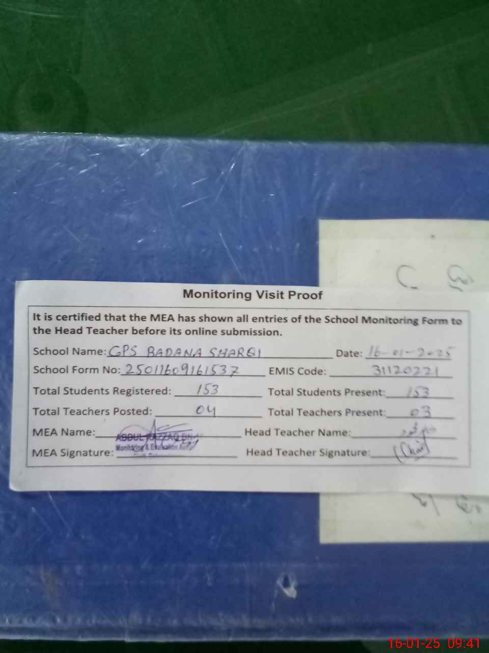 | EMIS Code: 31120221 | Name of School: GPS BADANA SHARQI | |||