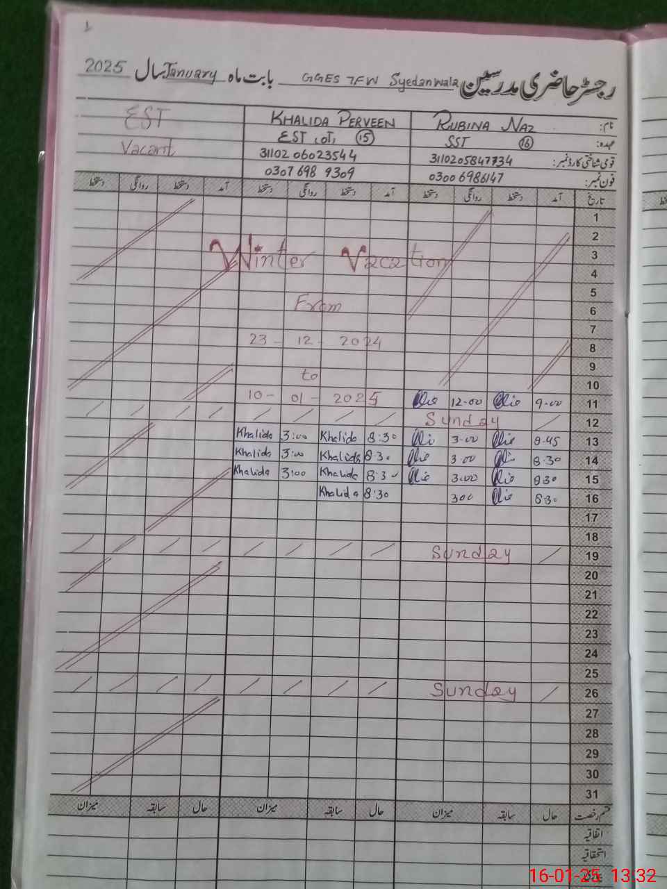 | Name: Ru**** Na**** Designation: (School Headmaster's/Headmistress's) SST Phone/Cell Number: 03**** |
