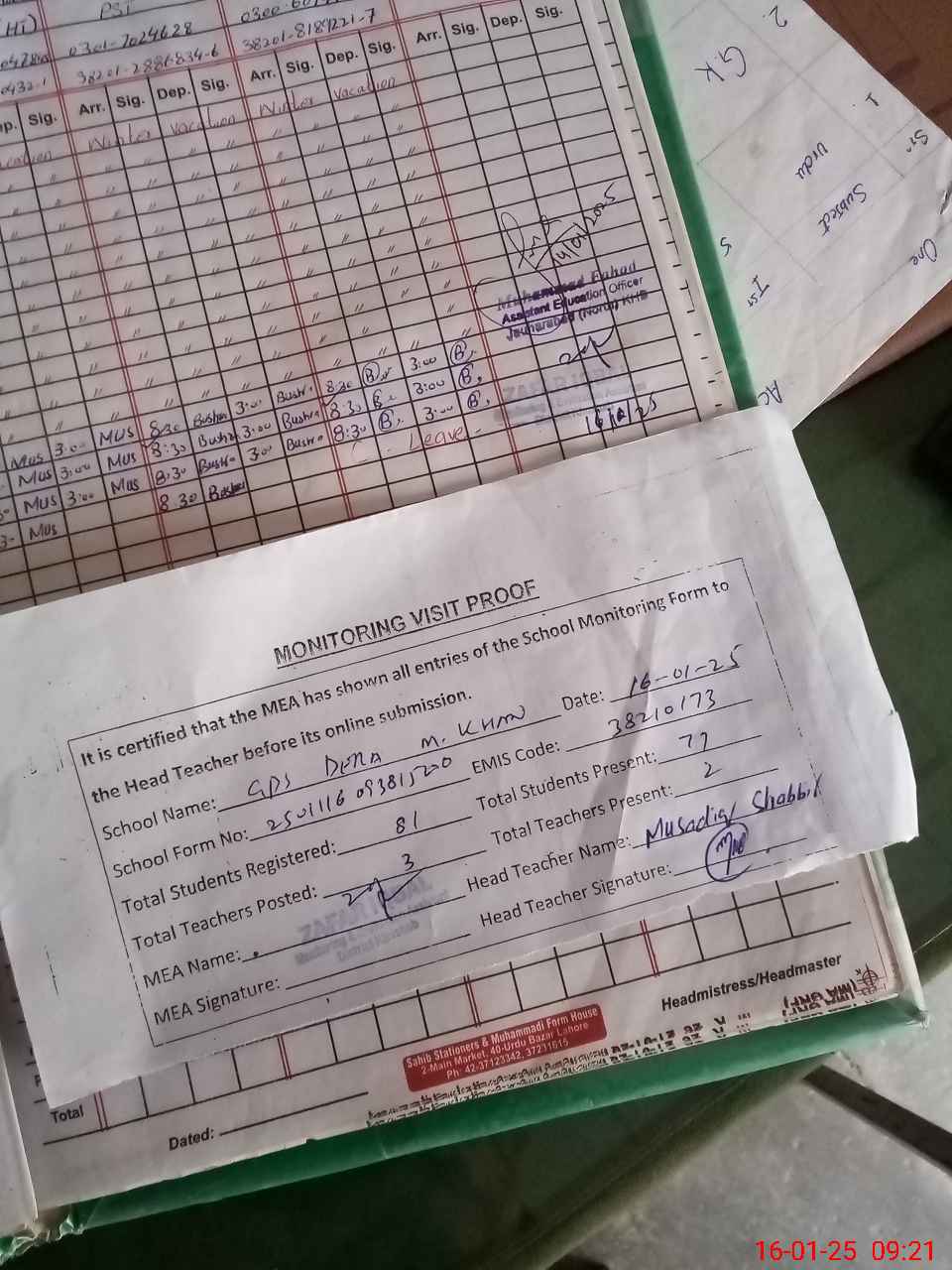 | EMIS Code: 38210173 | Name of School: GPS DERA MUHAMMAD KHAN | |||