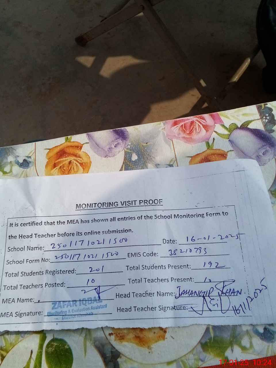 | Name: Mu**** Ja**** Kh**** Designation: (School Headmaster's/Headmistress's) Sst Phone/Cell Number: 03**** |