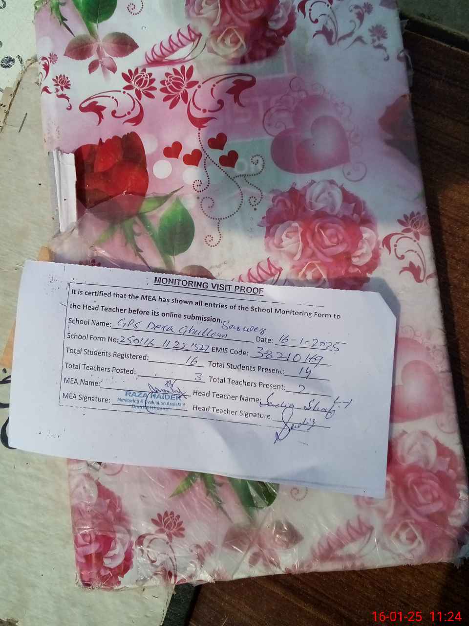 | EMIS Code: 38210169 | Name of School: GPS DERA GHULAM SARWAR | |||