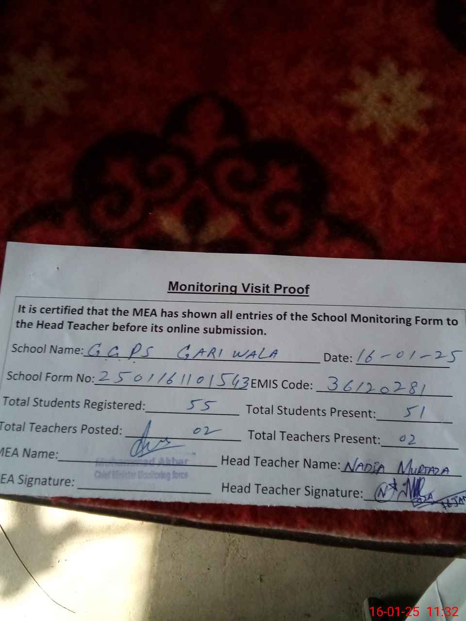 | EMIS Code: 36120281 | Name of School: GGPS GARI WALA SHUJABAD | |||