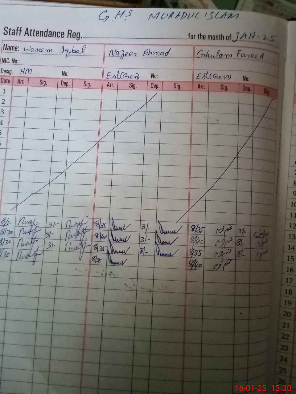 | CNIC | Full Name | Designation | R/C | Absence during last cal. month |