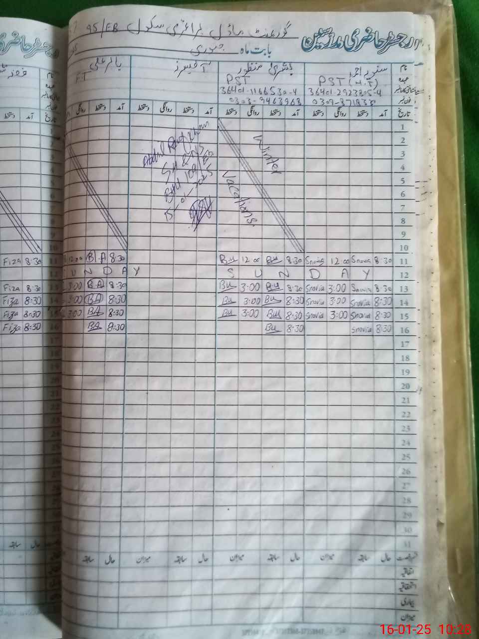 | Name: BU**** MA**** Designation: (School Headmaster's/Headmistress's) PST Phone/Cell Number: 03**** |