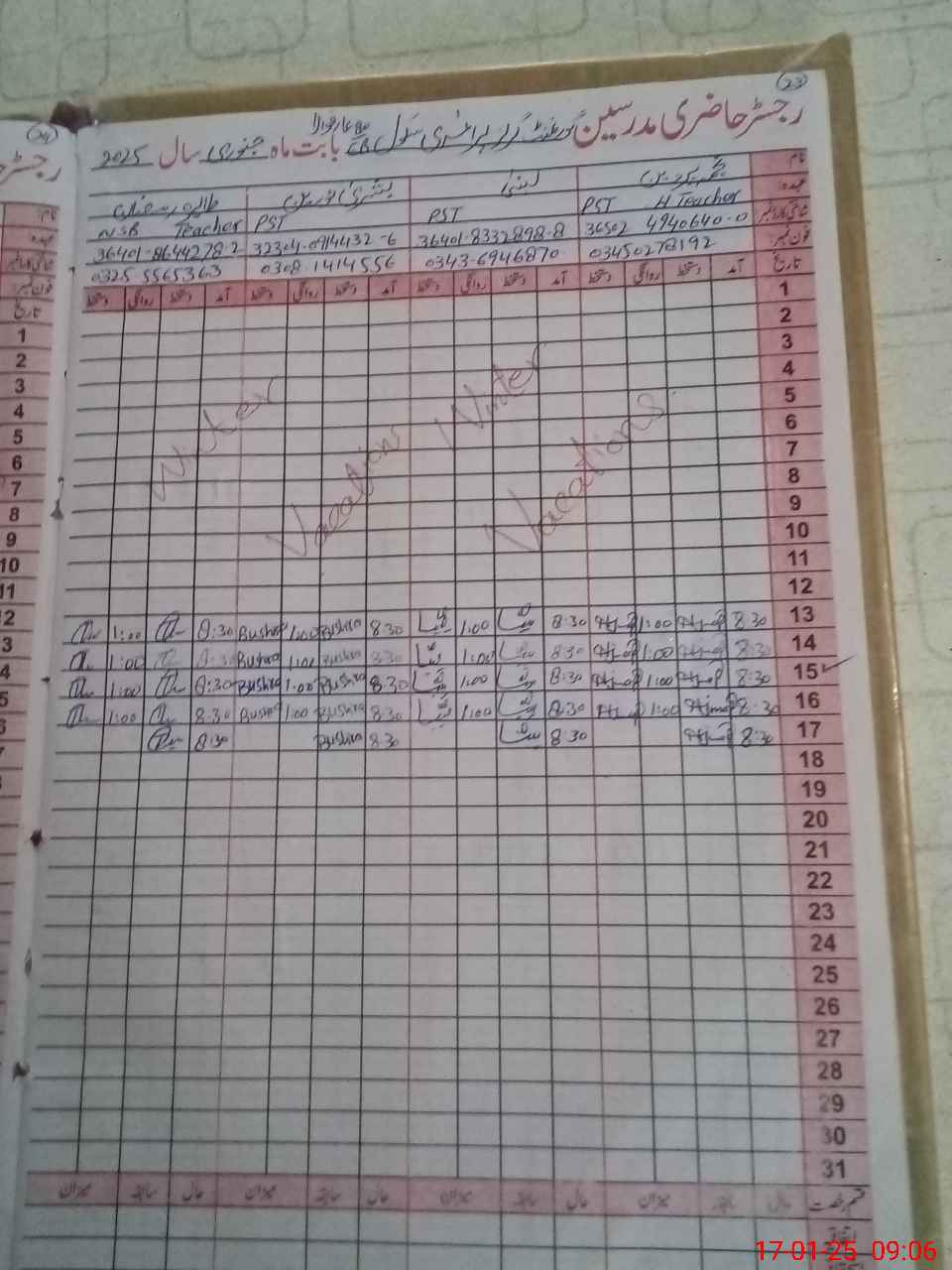 | Name: NA**** PE**** Designation: (School Headmaster's/Headmistress's) PST Phone/Cell Number: 03**** |